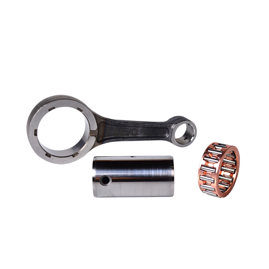 Las Bielas REVO son elaboradas en acero de aleación 20CrMn y tratadas térmicamente, y con canastillas acero plata para mejor desempeño y vida útil de la biela. El bulón cuenta con terminación “Shot blasting”, con bordes redondeados permitiendo un excelente empalme con el alojamiento de la caja del cigüeñal.