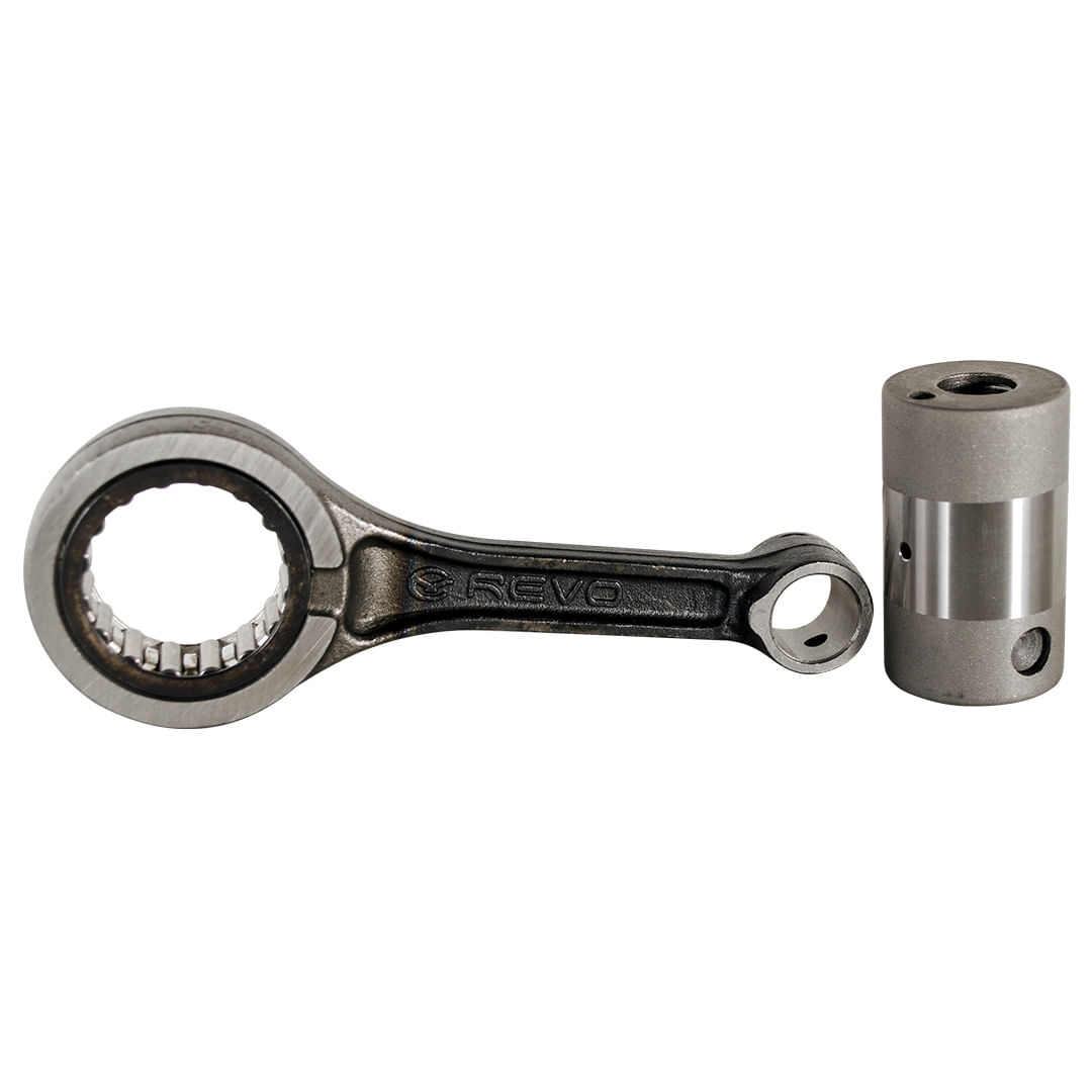 Las Bielas REVO son elaboradas en acero de aleación 20CrMn y tratadas térmicamente, y con canastillas acero plata para mejor desempeño y vida útil de la biela. El bulón cuenta con terminación “Shot blasting”, con bordes redondeados permitiendo un excelente empalme con el alojamiento de la caja del cigüeñal.