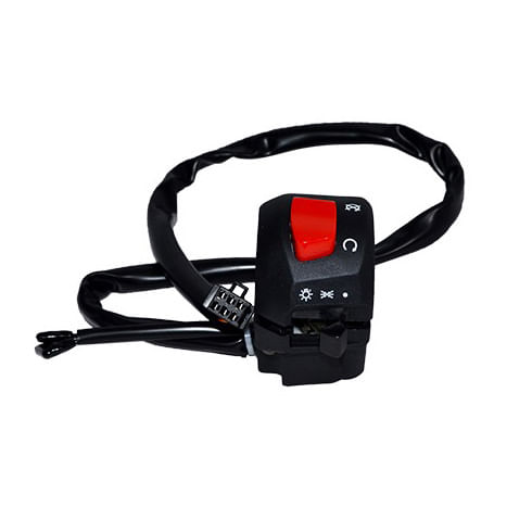 El comando derecho marca Sukiparts para moto AX4 es una pieza fundamental en el manillar que integra funciones clave como el botón de encendido, apagado, luces y arranque eléctrico