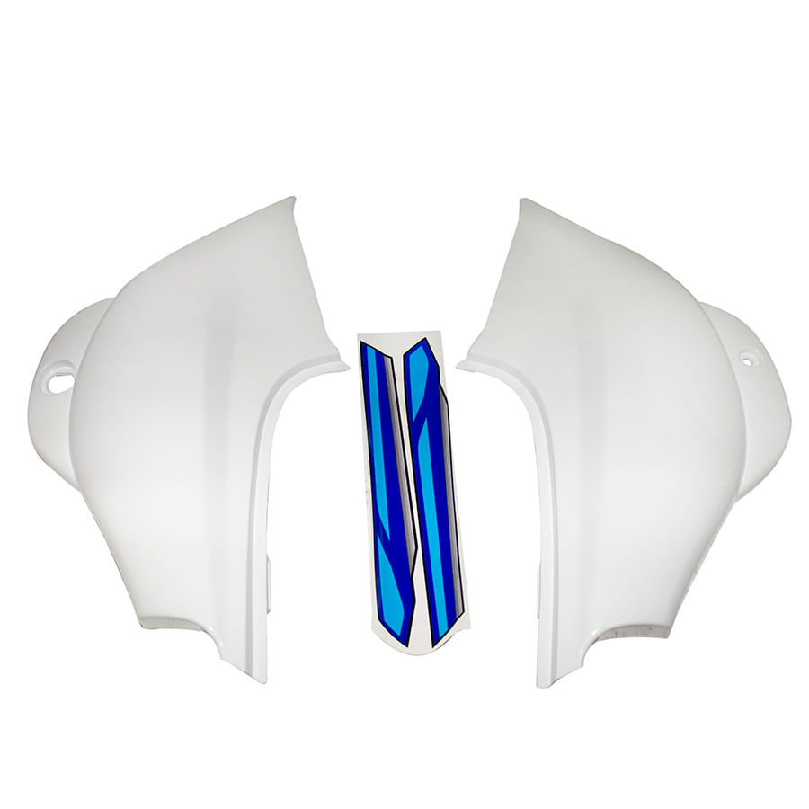 RepuestosPlasticos y accesoriosTapas lateralesTapas Laterales Blancas Flexi Con Calcas Azules Boxer Ct 100 OEM Kit